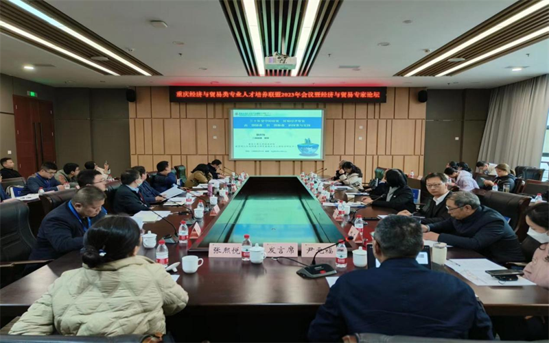 12月9日,由重庆经济与贸易类专业人才培养联盟主办,重庆工商大学经济学院承办,服务成渝地区双城经济战略的经济学专业建设虚拟教研室、国际市场开拓与贸易虚拟教研室协办的重庆经济与贸易类专业人才培养联盟2023年会议暨经管学院经贸专家论坛在重庆工商大学顺利举行。教育部高等学校经济学类专业教学指导委员会委员专家马正兵教授,教育部经济与贸易类教学指导委员会专家曾庆均教授、重庆工商大学经济学院院长宋瑛教授、重庆科技学院法政与经贸学院杨贵中教授、四川外国语大学国际金融与贸易学院,数字经济与国际贸易研究中心主任许劲教授、各个高校相关专业教师与企业负责人参加了此次论坛。论坛由重庆工商大学经济学院副院长尹元福教授主持。